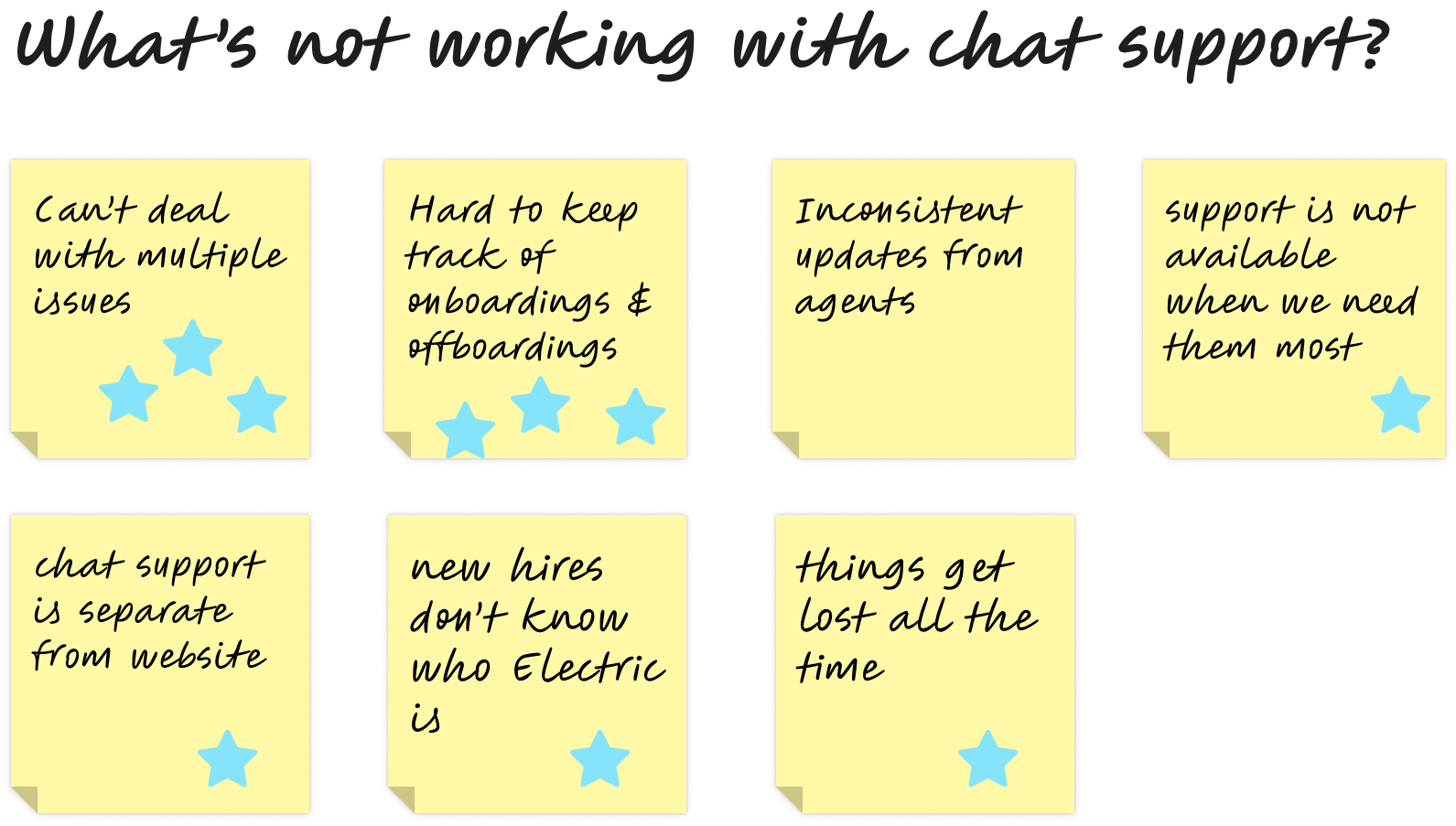 Electric gave support through chat—Slack and Teams. It was messy. Hard to follow.