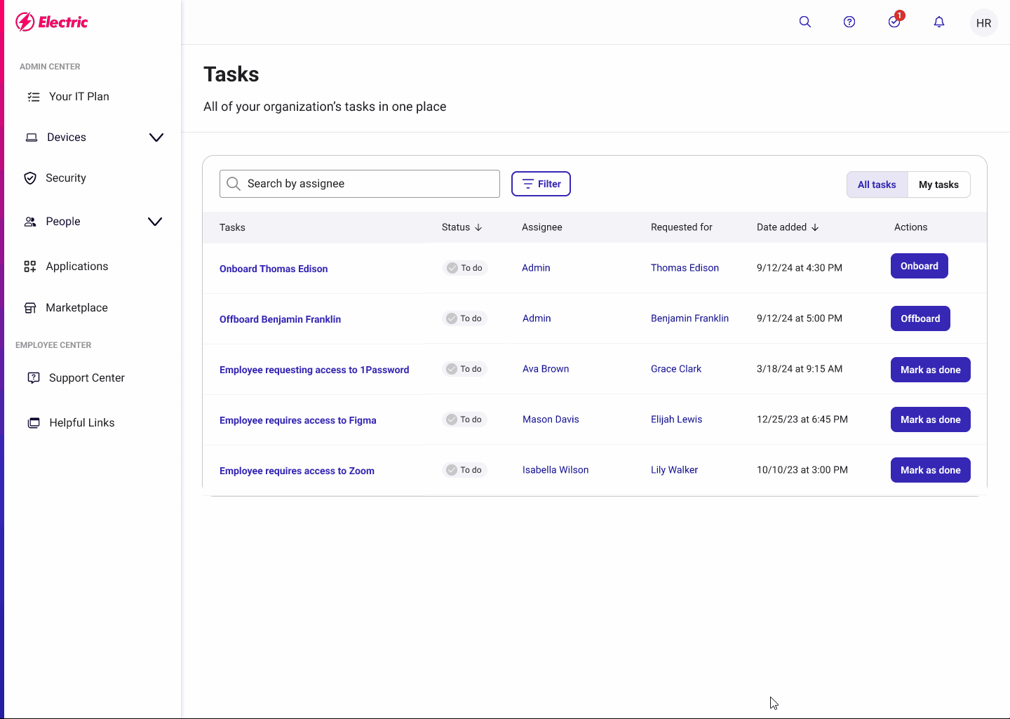 Electric’s IT Hub platform integrates with your HR platform to provide customized onboarding and employee support at all lifecycle stages. Developed and released in 2024