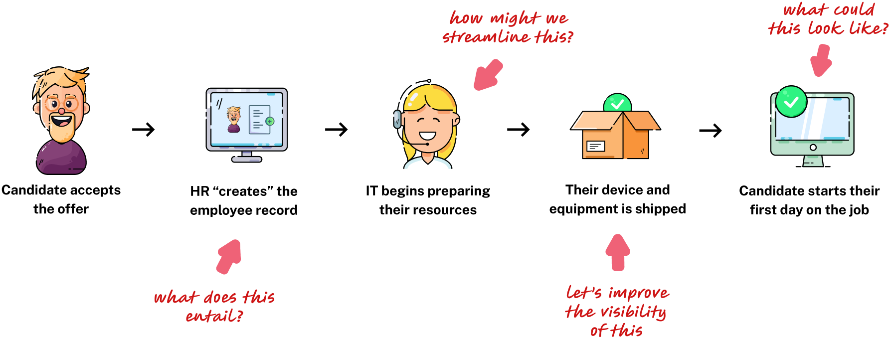 In order to improve the onboarding experience, we needed to understand the full employee lifecycle, not just the parts that Electric serviced. This allowed for my team to move past mouse clicks and look at process efficiency, introducing conditional phases.